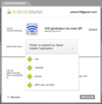 - 1 – Allez sur l’Android Market depuis votre smartphone ou depuis l’interface Web