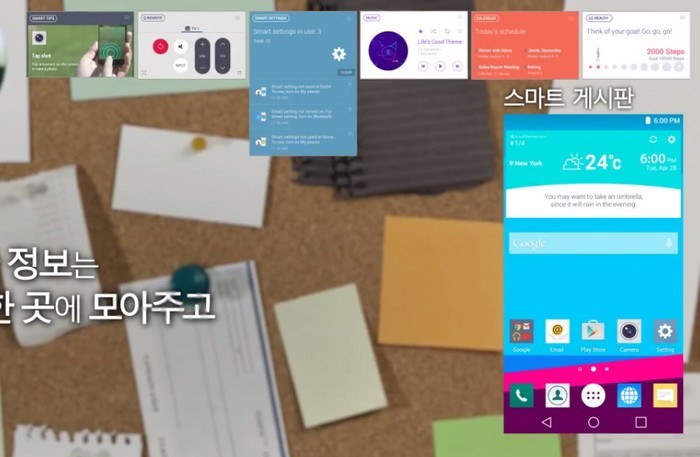 Smart Board rassemble des informations clés à partir de diverses applications, comme celle dédiée à l’enregistrement des données de santé, et calendrier sur un widget. Les icônes et la lisibilité ont été améliorées selon LG, et l’application Galerie a également été modifiée pour facilité l’organisation de vos photos.