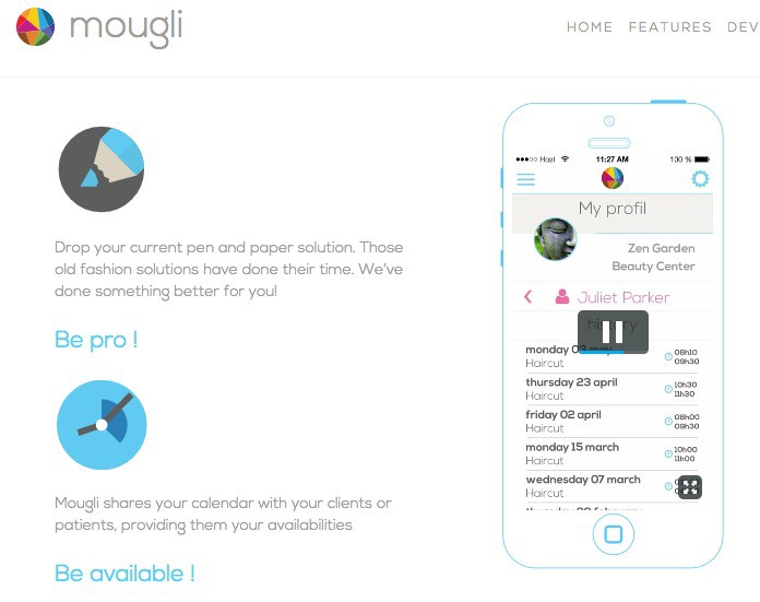 Pour la petite histoire, Mougli est une plateforme de réservation en ligne qui simplifie et modernise la prise de rendez-vous avec les commerces/services de proximité. Totalement dématérialisé, gratuit et disponible 24/7, Mougli aide les professionnels à gérer leur rendez-vous, leurs calendriers, leur personnel et leurs clients. Cette jeune startup s’est faite remarquer au Portugal, après avoir remporté le premier prix du Challenge Lisbonne 2014, organisé par l’incubateur Beta-i. Un beau tremplin pour la société, lui permettant d’attirer l’attention sur elle … et d’entrer en contact avec GoodBarber.