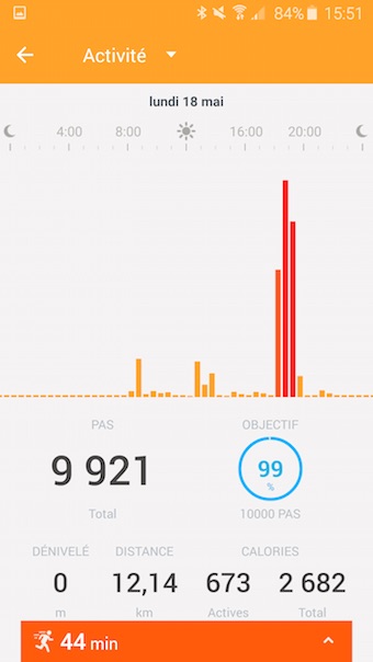 Un problème important avec cette application est l’absence de synchronisation. En effet, si vous n’avez pas synchronisé votre montre pendant plusieurs jours, les données synchronisées pourraient laisser quelques trous dans le tableau de bord. Dans ce cas, les données peuvent être perdues et jamais récupérées. Bien que peu fréquent, c’est une problématique qui nécessite une sérieuse attention.