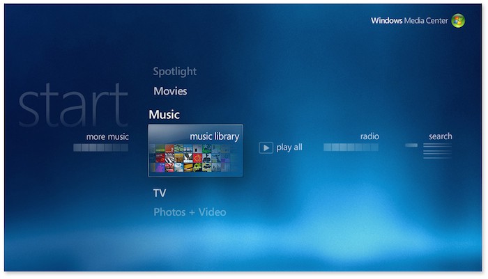 Il s’agit d’une triste fin pour une application qui a été mise en abîme une seule fois. Celle-ci, servant de media center, va permettre d’afficher de la musique, des films, des photos ou encore la télévision sur une interface visible à une distance de 3 mètres, et qui peut être exploitée avec une télécommande sur le canapé.