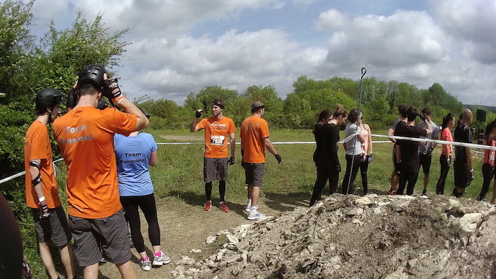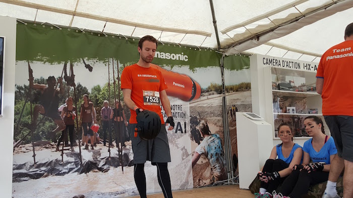 Pour en revenir à la MudDay de Paris, sachez que Panasonic a eu l’excellente idée de sponsoriser toutes les étapes du MudDay en France. Autrement dit, afin d’accompagner le lancement de sa nouvelle caméra d’action, et dans le but d’avoir un retour grandeur nature sur le terrain par les utilisateurs, la firme a décidé de fournir à tous ceux qui le souhaitent une caméra d’action HX-A1 pendant la durée de l’épreuve.