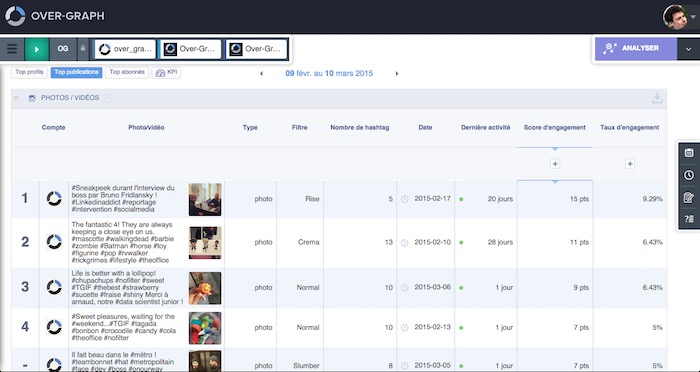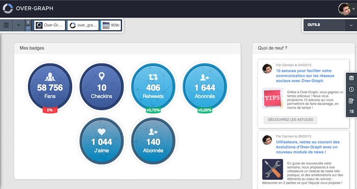 Over-Graph est un SaaS permettant aux marques du monde entier de faciliter leur communication sur les réseaux sociaux majeurs. La plateforme propose à ses 200 000 profils sociaux connectés des outils de publication, de gestion des conversations utilisateurs, d’analyse statistique, de rapports automatiques, etc.