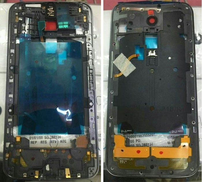 Deux images montrant le châssis de l’appareil du Moto X (2015) ont également été divulguées. Dans celles-ci, tous les composants ne semblent pas avoir été soudés à l’intérieur, mais nous pouvons voir que l’arrière de l’appareil semble avoir une découpe de forme carrée en dessous de la caméra. Cela pourrait signifier que le capteur d’empreintes digitales du Moto X (2015) sera intégré dans le logo Motorola à la place du bouton d’accueil.