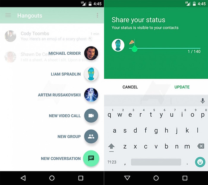 La mise à jour 4.0 de l’application Android apportera également la possibilité de changer le statut de l’utilisateur, une caractéristique que la version Web de Hangouts a depuis un certain temps maintenant.