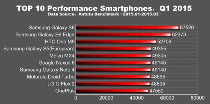 Après quelques minutes d’essai, l’appareil a réussi à marquer 49 221 points sur la célèbre plateforme de benchmarking. Cela signifie que le OnePlus 2 arrive à égalité avec les flagships concurrents sur le marché, comme le Galaxy Note 4 et le Nexus 6, mais en dessous de ceux plus récents comme le One M9 de HTC ou encore le Galaxy S6 de Samsung. Ceci est un peu bizarre, puisque le OnePlus 2 arriverait avec un Snapodragon 810, qui est la même puce incluse dans le One M9. À moins que pour la version 2.1, Qualcomm ait décidé de réduire la cadence du processeur pour éviter que celui-ci ne chauffe trop. Néanmoins, c’est étrange.