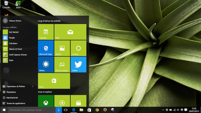 L’installation est simple, et vous avez la possibilité de mettre en place un code PIN pour vous connecter plutôt que d’utiliser un mot de passe. Si vous avez été habitué à Windows 7, vous remarquerez que le démarrage est beaucoup plus rapide – j’ai d’ailleurs installé la version 32 bits sur un vieux portable de cinq ans, et l’amélioration de la performance est impressionnante. Néanmoins, il n’y a pas une différence notable par rapport à Windows 8.