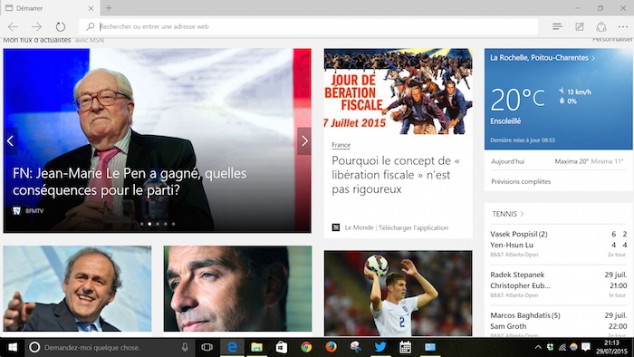 Il y a plusieurs nouvelles applications qui sont livrées avec Windows 10. On va retrouver un navigateur Web, nommé Microsoft Edge, qui est conçu pour avoir une interface minimale afin de privilégier au maximum le contenu des pages Web. Il possède également une fonctionnalité d’annotation qui vous permet de mettre en évidence une partie d’une page et d’ajouter des notes, avant de l’envoyer à quelqu’un d’autre.