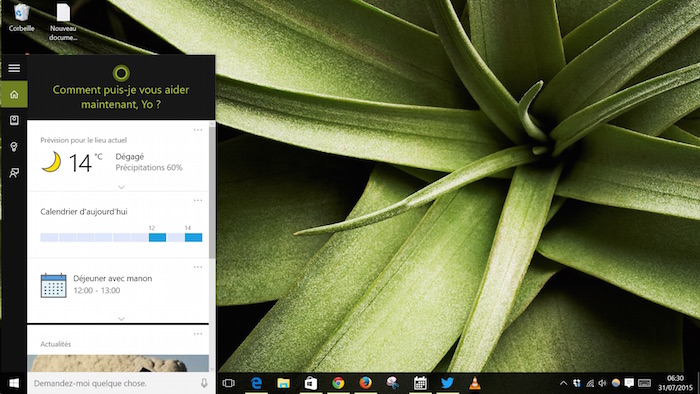 Brad Chacos, rédacteur en chef de PCWorld, a décrit l’assistant virtuel comme un “assistant numérique intelligent et sarcastique”, en mentionnant que ses capacités de recherche en langage naturel “déchirent”, et son “intelligente capacité à remonter les news et les notifications qui vous importe” aide à adapter Windows 10 pour répondre à vos besoins spécifiques.