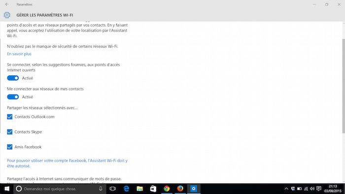 Problème : Windows 10 partage votre réseau Wi-fi avec vos contacts