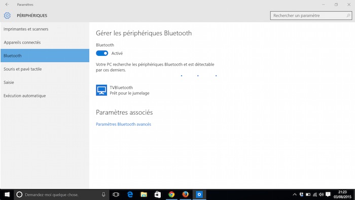 - Allez dans “Paramètres > Périphériques” et assurez-vous que le Bluetooth est activé