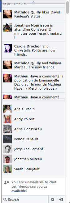 Une autre nouveauté concerne le nouvel encart dans la colonne de droite de l’application, au dessus de la fenêtre de chat. Il s’agit d’un flux en temps réel affichant toute l’activité de votre réseau. Contrairement au fil d’actualité, qui se concentre sur le passé, le flux se concentre sur l’activité actuelle. Ainsi, il remplace logiquement la fonctionnalité “Plus récentes” de l’ancien fil d’actualité.