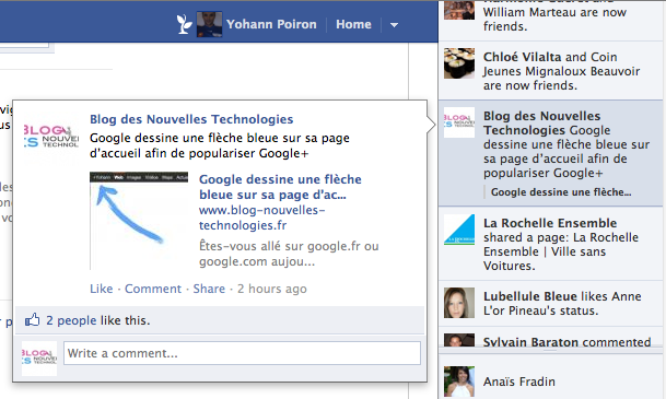 Facebook qui a fait des tests avec un petit groupe d’utilisateurs, lance ainsi de nouvelles fonctionnalités afin de tenir tête à un nouveau petit qui tente de lui voler la vedette, Google+.