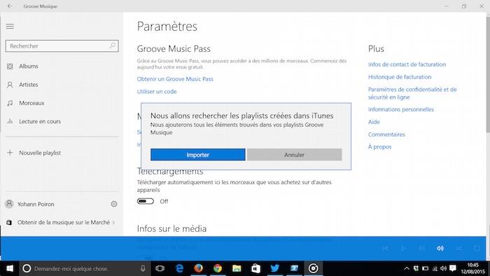 Pour ce faire, et pour importer également vos listes de lecture (playlists) enregistrées dans Tunes au sein de Groove Musique, il suffit de suivre ces instructions :