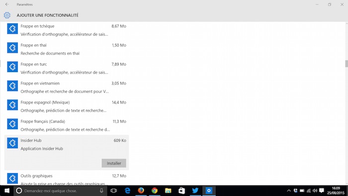 L’application Insider Hub n’est pas automatiquement installée si vous adhérez au programme Insider, mais vous devriez le faire. Pour l’installer, ouvrez l’application “Paramètres”, sélectionnez “Système”, puis “Applications et fonctionnalités” dans le menu latéral. De là, sélectionnez “Gérer les fonctionnalités facultatives”. Faites défiler la liste, et trouvez “Insider Hub” dans la liste. Sélectionnez-la, et cliquez ou appuyez sur le bouton “Installer”.