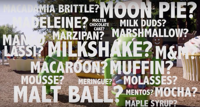 Moon pie ? Malt ball ? Marshmallow ? Macaroon ? Muffin ? Milkshake ? Ce sont toutes les possibilités mises en avant par la vidéo. Considérant que Google a signé un accord avec KitKat il n’y pas trop longtemps, M&Ms pourrait être un choix intéressant et judicieux.