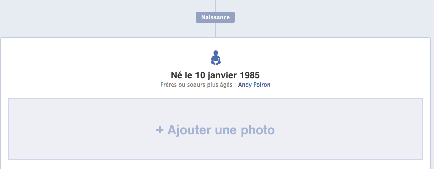 Vous pouvez également ajouter des images à votre timeline, ainsi que d’autres formats de contenu. L’idée derrière la timeline est clairement de construire une vue de vie et ce d’une manière très simple en une seule page.