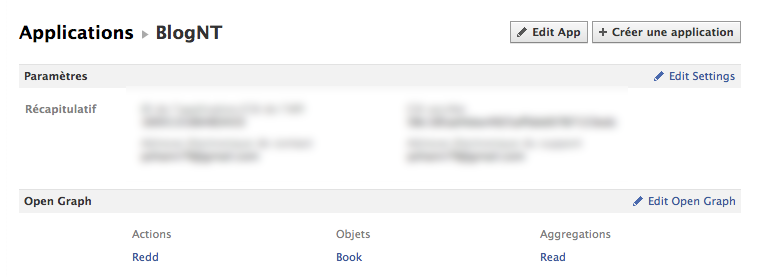 - 5 – Assurez-vous que vous êtes dans l’onglet paramétrage de votre nouvelle application. Vous devriez voir le nom de votre application en haut de la page