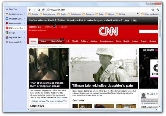La dernière version de Chrome a également été équipée d’un nouveau “labo” avec des nouveautés qui sont apparemment conçues pour offrir des fonctionnalités expérimentales. Vous pouvez y accéder an tapant about:labs dans la barre d’URL. De plus dans la dernière version (Chrome 7.0.508.0 Build 57738) les onglets sont organisés verticalement sur le côté gauche de l’écran, ressemblant à la structure de navigation d’un site web. C’est un concept intéressant si vous avez un écran large permettant d’accueillir des marque-pages latéraux, mais il peut être une caractéristique assez inutile sur les téléphones portables ou même les Netbooks.