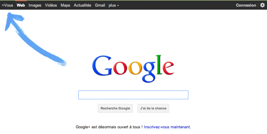 Même si la semaine dernière l’actualité a été monopolisée par les différences faites par Facebook, que ce soit pour la présentation de la “timeline” lors de la conférence F8 ou par les nouveautés apportées dans son interface, n’oublions pas que je vous avais annoncé que Google avait mis en place une des meilleurs publicités pour son réseau social, Google+, à l’aide d’une flèche bleue sur sa page d’accueil. Le but ? Conquérir un maximum d’utilisateurs afin que le réseau social s’ouvre à une communauté moins “geek”.