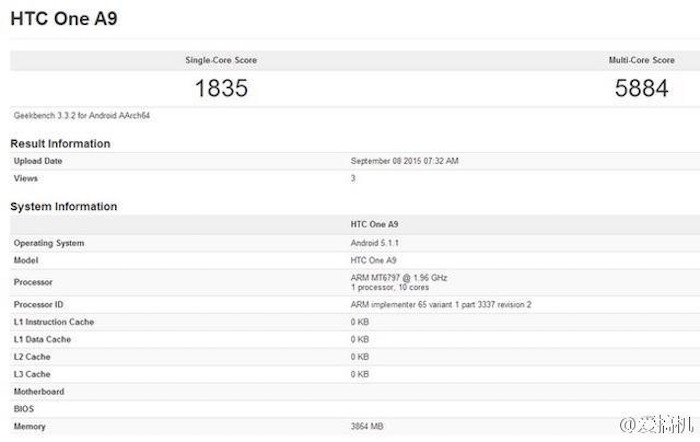 Le One A9 a fait une apparition sur Geekbench la semaine dernière, révélant les spécifications de celui-ci. L’outil de benchmarking a révélé le processeur déca-core MediaTek Helio X20 et 4 Go de mémoire vive (RAM), qui sont deux caractéristiques qui ont seulement été évoquées et aperçues dans le Predator 6 d’Acer, un smartphone dédié aux gamers. Le Helio X20 fonctionne sur un processeur octa-core divisé en deux segments : une puce quadricoeur cadencée à 1.4 GHz, et une autre puce cadencée à 2.0 GHz. Enfin, un processeur double-cœurs cadencé à 2.5 GHz est collé au processeur octa-core pour les tâches plus intensives.