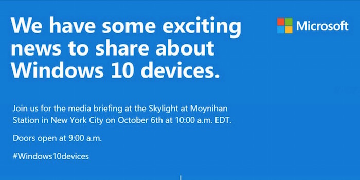 L’invitation est clairsemée et pas avare de détails, mais on peut imaginer que Microsoft va en profiter pour annoncer sa toute nouvelle tablette Surface, la Surface Pro 4, ainsi que le premier dispositif officiel de la firme, tournant sous Windows 10 Mobile.