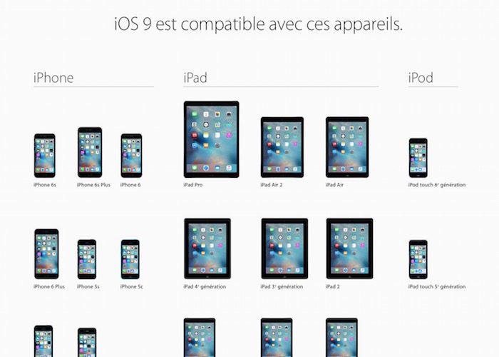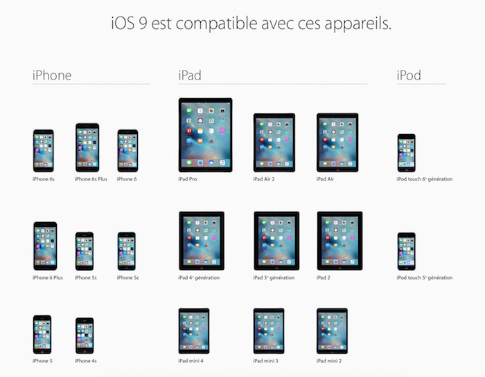 Avant d’être trop excité, vous devez vérifier si votre iDevice est compatible pour une mise à jour iOS 9. Cela est particulièrement le cas pour ceux qui utilisent de vieux appareils Apple – on peut parler d’antiquités. Le tout récent système d’exploitation mobile d’Apple, iOS 9, prend en charge des appareils aussi vieux que l’iPhone 4s, l’iPad 2, et l’iPod touch de 5e génération, mais ne fonctionnera pas pour l’iPhone 4.
