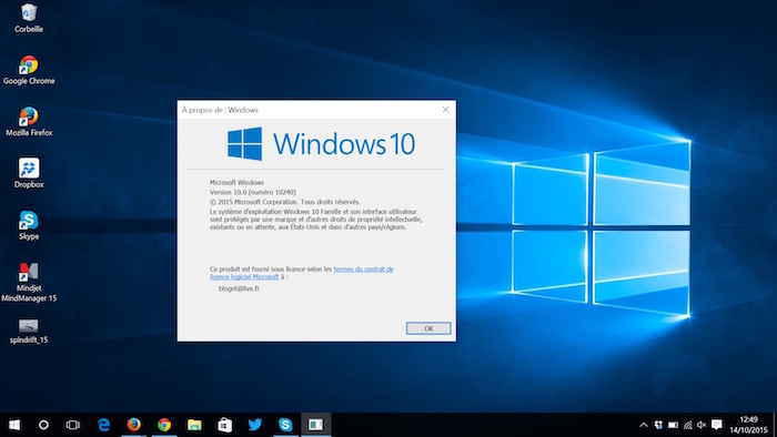 La build 10565 expirera le 16 juillet 2015. Pour vérifier si votre copie de Windows 10 expirera, vous pouvez taper “winver.exe” dans la barre de recherche de Cortana ou Windows.