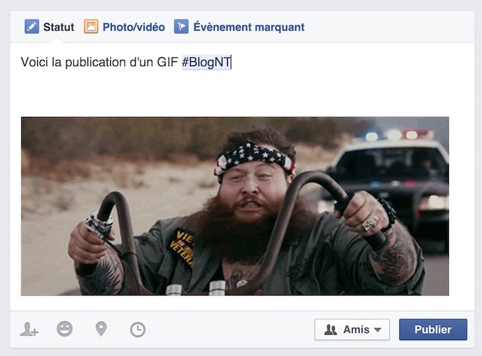 Maintenant, vous voyez que le processus est très simple, et vous n’avez plus qu’à trouver votre GIF pour le publier sur Facebook, et ainsi animer le flux d’actualités de vos amis. Restent à croiser les doigts que notre Facebook ne se transforme pas en sapin de Noël…