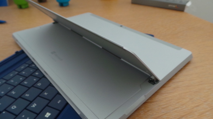 La béquille continue à donner à la Surface 3 davantage de polyvalence que d’autres tablettes, car elle offre une expérience très agréable pour regarder une vidéo sans avoir à tenir le dispositif, notamment grâce à ses trois angles prédéfinis. D’ailleurs, l’un d’eux nous donne l’angle nécessaire pour l’utiliser confortablement sur mes genoux.