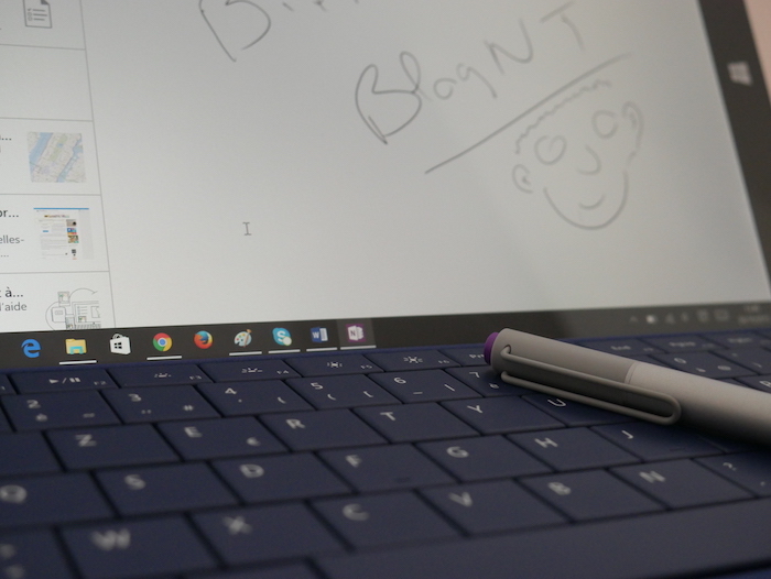 Et, il y a aussi le Stylet Surface ! En plus d’être utile pour prendre des notes, son autre but est d’agir presque comme une souris grâce aux multiples fonctionnalités dont il dispose, et notamment son clic droit.