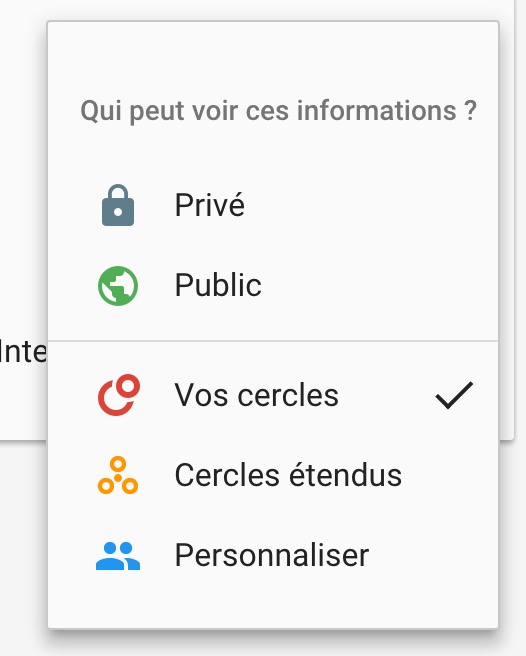 Si vous souhaitez changer la portée de vos informations, vous pouvez le faire en cliquant sur le petit symbole qui vous donne accès à diverses options de personnalisation.