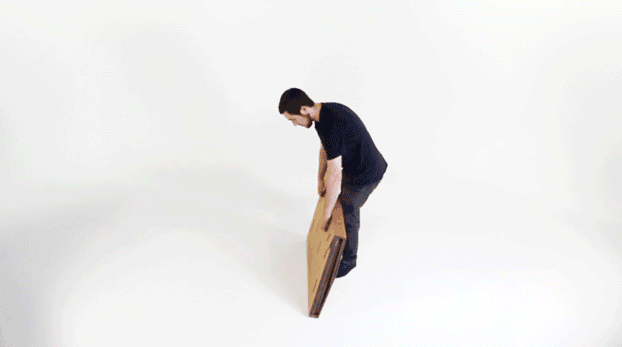 Une fois le bureau replié pour être transporté, une poignée de transport permet de l’emmener où vous voulez. Le tout pèse 6.5 kg. Il est donc impressionnant qu’il soit capable de résister à un poids de 85 kg – il y a une photo où l’on voit une personne être debout dessus. Chaque bureau a une durée de vie estimée de 3 ans, en fonction de l’utilisation (et combien de fois vous vous tenez debout dessus).