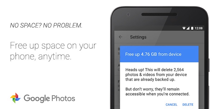 Le nouveau bouton nommé “Free Up Space” de Google Photos dans la version anglaise (pour le moment, on ne sait pas comment Google l’a traduit en France), est visible dans l’onglet Paramètres, et peut reconnaître et supprimer les vieilles photos qui ont déjà été sauvegardées dans le cloud – après confirmation que vous voulez, supprimer les images.