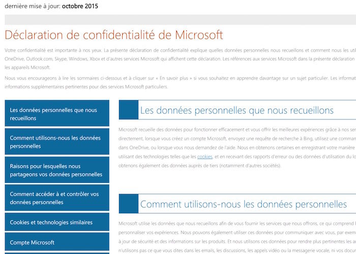 Parmi les autres informations recueillies, on apprend que le contenu des e-mails et d’autres messages est utilisé, au moins avec Outlook. Microsoft explique avoir besoin d’accéder au contenu d’un message … pour vous l’afficher ! Cela peut sembler un peu idiot, mais avec tant d’inquiétude sur la vie privée, Microsoft doit explicitement indiquer que pour vous présenter un e-mail, ses services ont besoin d’accéder aux données.