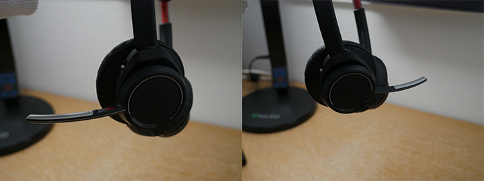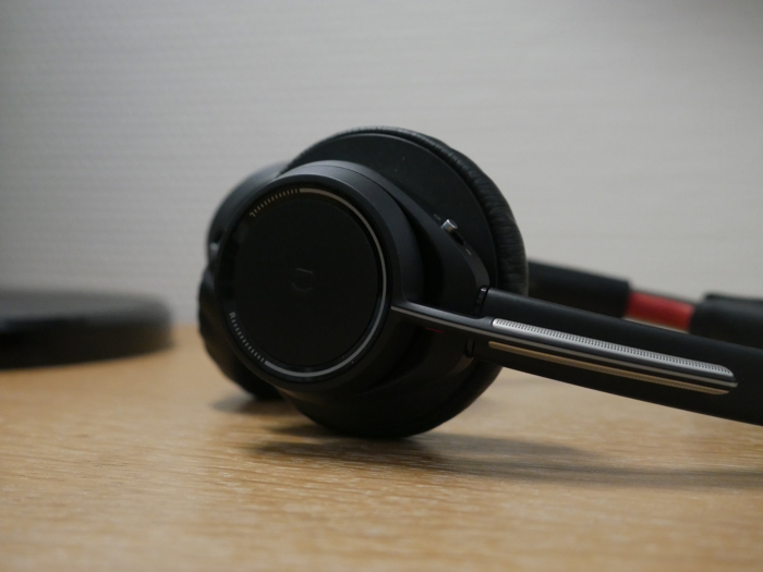 Le Voyager Focus UC pèse 155 grammes, ce qui est seulement 15 grammes plus lourds que le BackBeat Sense. Néanmoins, cette différence de poids est très certainement liée au réducteur de bruit actif, et à la perche de microphone. Le casque peut également être porté à gauche ou à droite, en appuyant sur la perche en fonction de vos envies. Le casque va automatiquement basculer l’audio en conséquence, et le positionnement des boutons est maintenu. Quelle que soit la façon dont vous l’utilisez, le casque s’adapte.