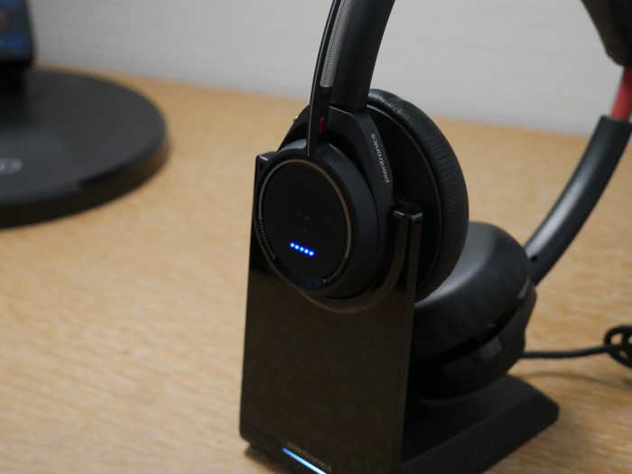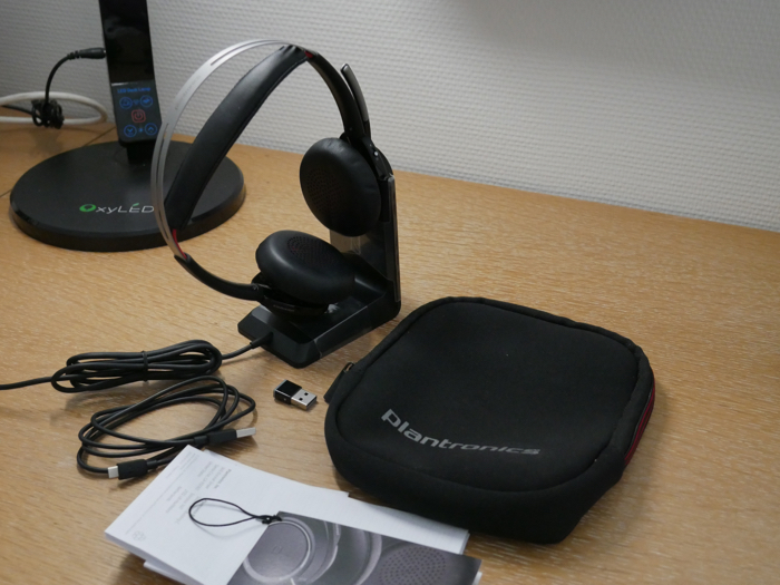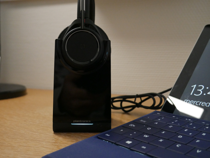 Il y a beaucoup d’automatisation grâce à des capteurs intelligents dans ce casque. Par exemple, en éloignant le casque, cela va automatiquement couper le micro pendant un appel. Ramenez-le sur votre tête, et il va se réactiver. Vous pouvez toujours vérifier l’état du dongle USB (la couleur rouge signifie en sourdine, etc.) ou utilisez les capteurs marche/arrêt grâce à l’application gratuite Plantronics Hub. Si vous coupez manuellement le microphone et l’oubliez, l’appareil vous avertira que ce dernier est toujours “muet” lorsque vous essayez de parler.