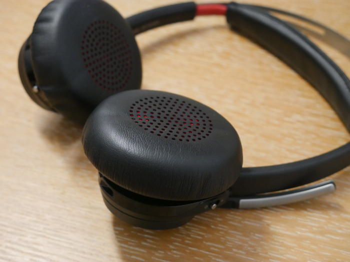 Empruntant la conception du BackBeat Sense, un autre casque de la marque, le Voyager Focus UC est élégant et minimaliste. Avec un mélange de matières différentes : noir, gris et rouge à l’intérieur, le casque présente un aspect professionnel, avec un look assez professionnel.
