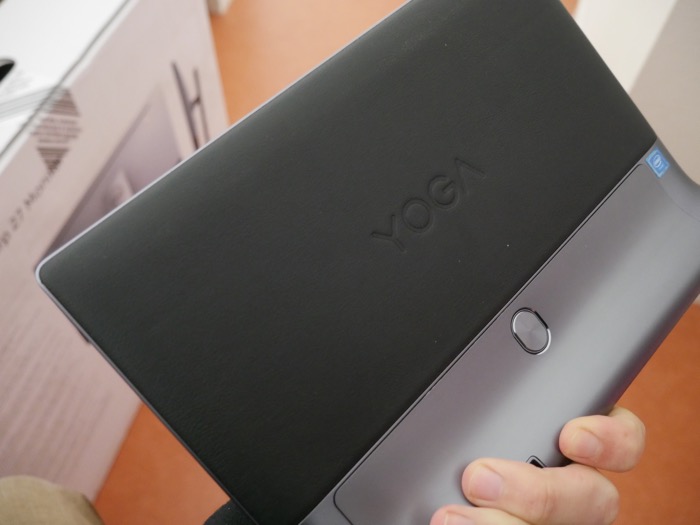 Adoptant une conception traditionnelle, il n’est pas étonnant de voir la célèbre charnière cylindrique, ainsi que sa béquille réglable. Cependant, celle-ci a été subtilement améliorée avec une nouvelle finition simili cuir qui couvre la plupart de la coque arrière de la tablette. En combinant ceci avec son châssis en métal durable, Lenovo a réussi à lui donner un look plus sophistiqué, et plus professionnel.