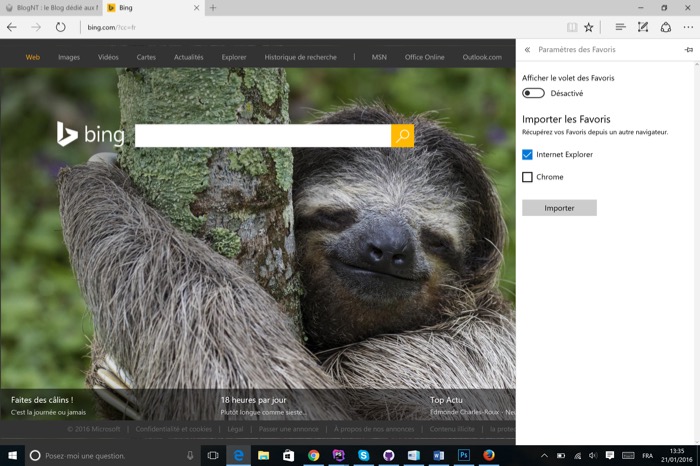 Microsoft Edge devrait être en mesure d’importer directement des données d’autres navigateurs Web, comme Internet Explorer, Chrome ou encore Firefox. Cliquez sur le bouton de Hub (trois traits l’un au-dessous de l’autre), sélectionnez « Favoris » et cliquez sur « Importer les favoris ». Il est possible que Firefox n’apparaisse pas.
