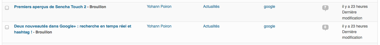 Le plugin n’est pas sans problèmes mineurs, tels que le choix des catégories du blog. En effet, il sera très rare que chacune des publications sur Google+ traitent du même sujet… Je vous recommande, notamment si vous souhaitez avoir tous les articles correctement structurés sur votre blog, de préférer importer les publications comme en attente de relecture (Pending, en anglais), puis d’ajouter votre touche personnelle finale avant la publication.