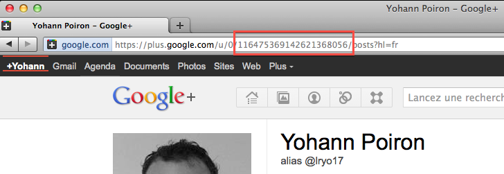 Pour configurer le plugin, vous aurez besoin de votre identifiant Google+ (ID). Vous pourrez le trouver dans l’URL de votre profil.