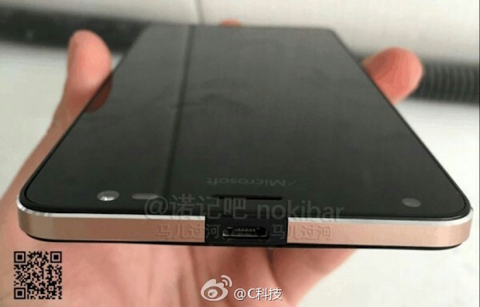 En outre, le Lumia 850 semble disposer d’un châssis en métal doré, avec des bords chanfreinés, et il semble y avoir une prise casque de 3,5 mm sur le bord inférieur, ainsi qu’un connecteur micro-USB sur la tranche supérieure.