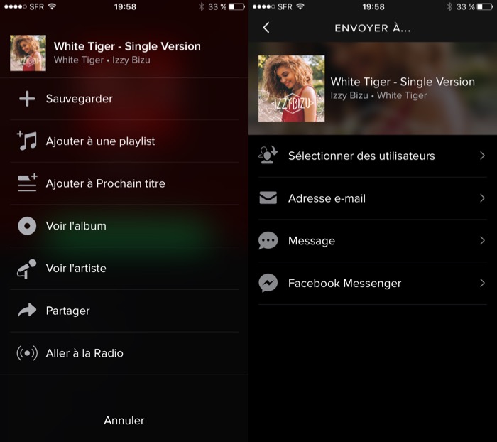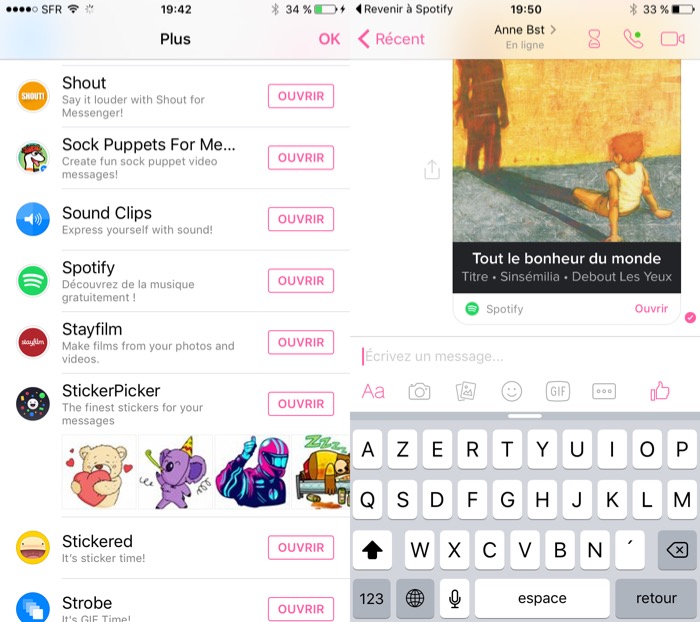 Cet ajout est plus facile que d’avoir à lancer séparément l’application Spotify pour ensuite copier-coller la musique dans Messenger. Mais, c’est un peu moins transparent que l’intégration Uber, puisque vous avez encore besoin de l’application Spotify pour l’utiliser.