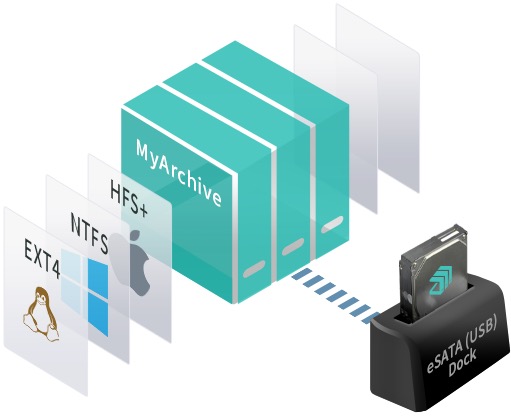Et, sachez que les disques MyArchive peuvent être retirés et insérés dans des boîtiers externes eSATA/USB et être directement utilisables depuis des PC Windows ou Mac en plus de continuer à les utiliser sur d’autres NAS ASUSTOR.