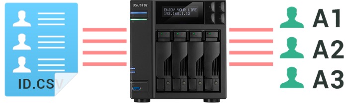 Enfin, ASUSTOR fournit désormais un moyen plus pratique et plus efficace pour créer des comptes d’utilisateurs en masse. Pour ce faire, la simple création d’un fichier texte (*.txt, *. csv) permet cet import en masse de données.