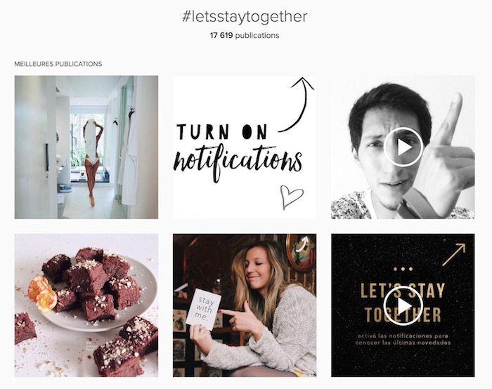 Ceci est naturellement un sujet de préoccupation pour les utilisateurs les plus populaires de Instagram, qui ont peur que leurs publications ne se retrouvent plus aux yeux de leurs abonnés à la suite des changements. Par conséquent, dans la crainte d’une mise à jour imminente, l’application a été inondée avec des images invitant les utilisateurs à activer les notifications pour leurs publications, assortis du message : « Instagram change sa politique de notifications. Activez les notifications si vous voulez continuer à suivre mes posts ».