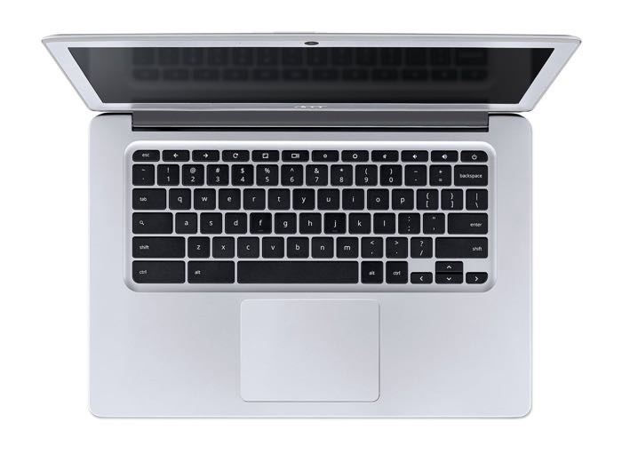 Le Chromebook 14 est le premier modèle d’Acer à avoir un châssis tout en aluminium, et le premier à avoir deux ports USB 3.1. Le châssis en aluminium a des coins arrondis et une finition brossée. Le Chromebook 14 est relativement léger, 1,55 kg, soit légèrement plus lourd que les modèles 11 pouces d’Acer. Non seulement il est léger, mais il est également assez mince, avec une épaisseur de seulement 1,7 cm — semblable au MacBook Air. La portabilité et la robustesse du Chromebook sont réellement intéressantes.