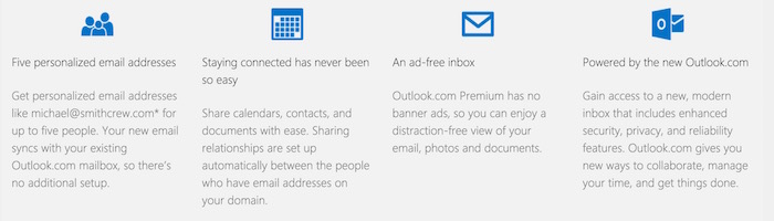 Selon la page, Outlook Premium (Pilot) fournira cinq adresses mails personnalisées, une boîte de réception sans publicité, ainsi que la possibilité de partager des calendriers, des contacts et des documents entre ces comptes, et bien plus. Le tout sera gratuit pendant un an. Après l’année écoulée, le service vous coûtera 3,99 dollars par mois.