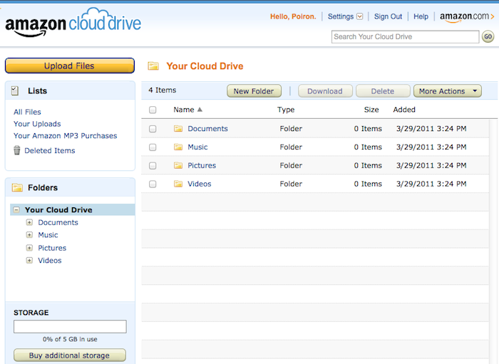 Amazon Cloud Drive est un simple service de stockage en ligne avec 5 Go d’espace libre, avec la possibilité de payer 1$ par giga supplémentaire. En revanche, vous devez disposer d’Adobe Flash, ce qui signifie que les dispositifs iOS n’ont pas de chance…